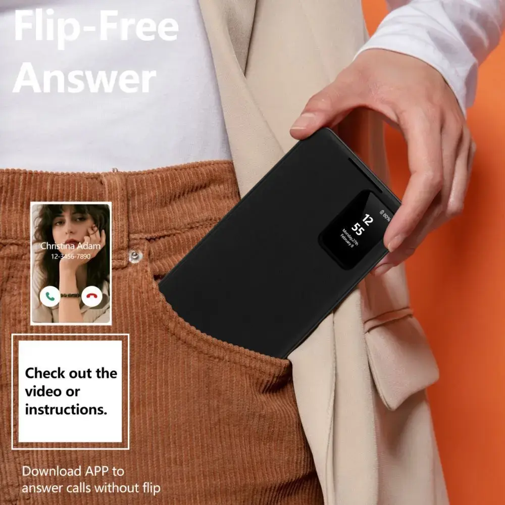 Thanks to the practical window on the front flap, the user has quick access to the time, date, and notifications without opening the case. Precise cutouts allow convenient use of buttons, ports, and the camera. The slim design ensures the case fits perfectly in hand without significantly increasing the phone’s thickness, making it an excellent everyday choice.