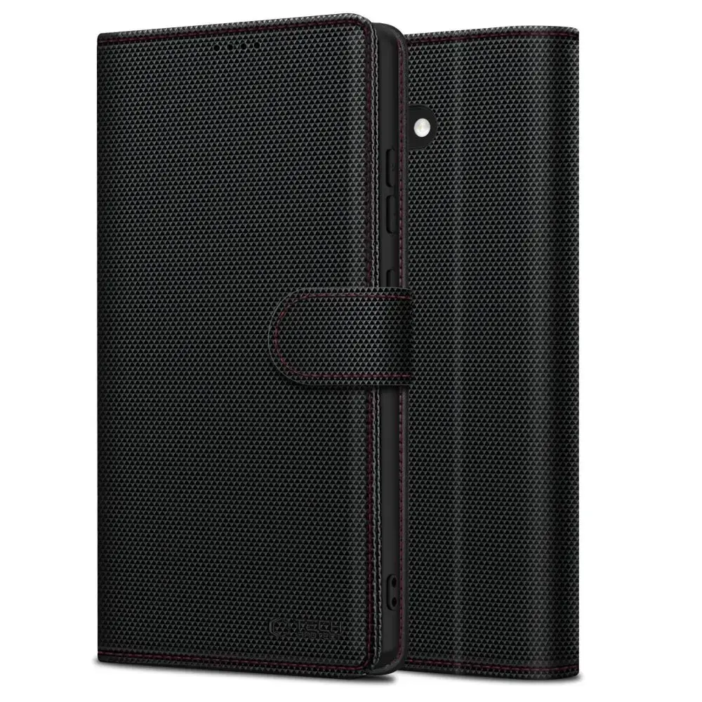 Tech-Protect Wallet RS to eleganckie i trwałe etui, które łączy klasyczny styl z oryginalnym wzornictwem. Wyróżnia się chropowatą powierzchnią, zapewniającą pewny chwyt, oraz stylowym czerwonym obszyciem, dodającym mu charakteru.