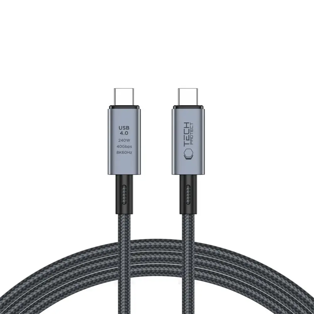 The Tech-Protect UltraBoost Max USB 4.0 cable is the perfect accessory for tech enthusiasts, ensuring compatibility with a wide range of devices including smartphones and tablets. This robust cable features a durable design that supports high-speed data transfer and fast charging, making it ideal for both personal and professional use. With USB 4.0 technology, it delivers impressive data transfer speeds of up to 40 Gbps, allowing for quick file transfers of large media such as 8K videos. The cable supports 8K video output, making it an excellent choice for connecting to modern displays, ensuring stunning visuals. Thanks to its 240W Power Delivery capability, it can rapidly charge devices like laptops, tablets, and smartphones, significantly reducing charging time. The universal USB-C connectors enhance compatibility across a variety of devices, ensuring a seamless experience. Built with high-quality materials, this cable is designed for durability and reliability, providing a stable connection for all your tech needs.