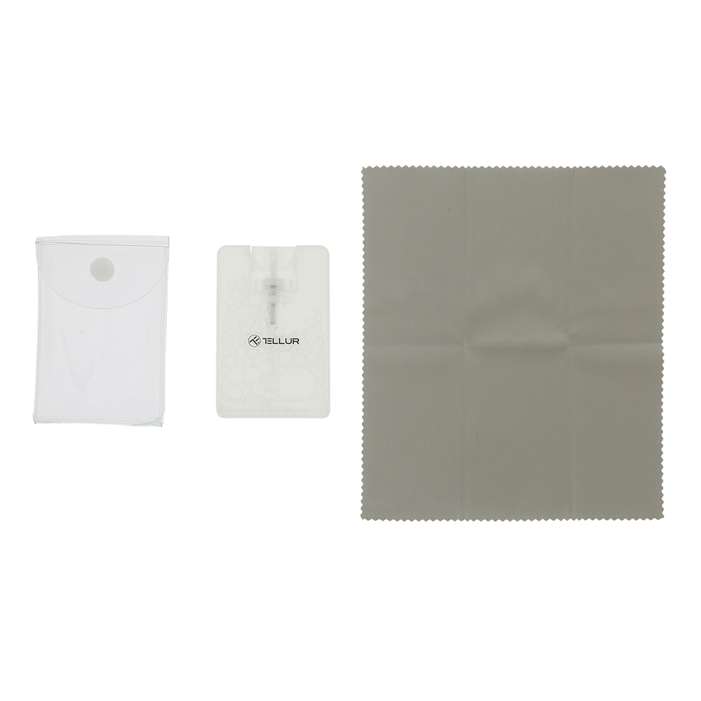 Tellur optical surface cleaning kit, the ultimate solution for crystal clear lenses and screens. The 20ml spray bottle effortlessly removes smudges, fingerprints and dirt, leaving optical surfaces immaculate. The microfiber cloth, specially designed for precision cleaning, ensures a streak-free shine every time. Plus, the handy carry bag keeps your kit organized on the go. Dimensions: 85 x 55 x 10 mm Weight: 53 g Package includes: 1 x Spray bottle 20 ml 1 x Microfiber cloth 1 x Storage bag
