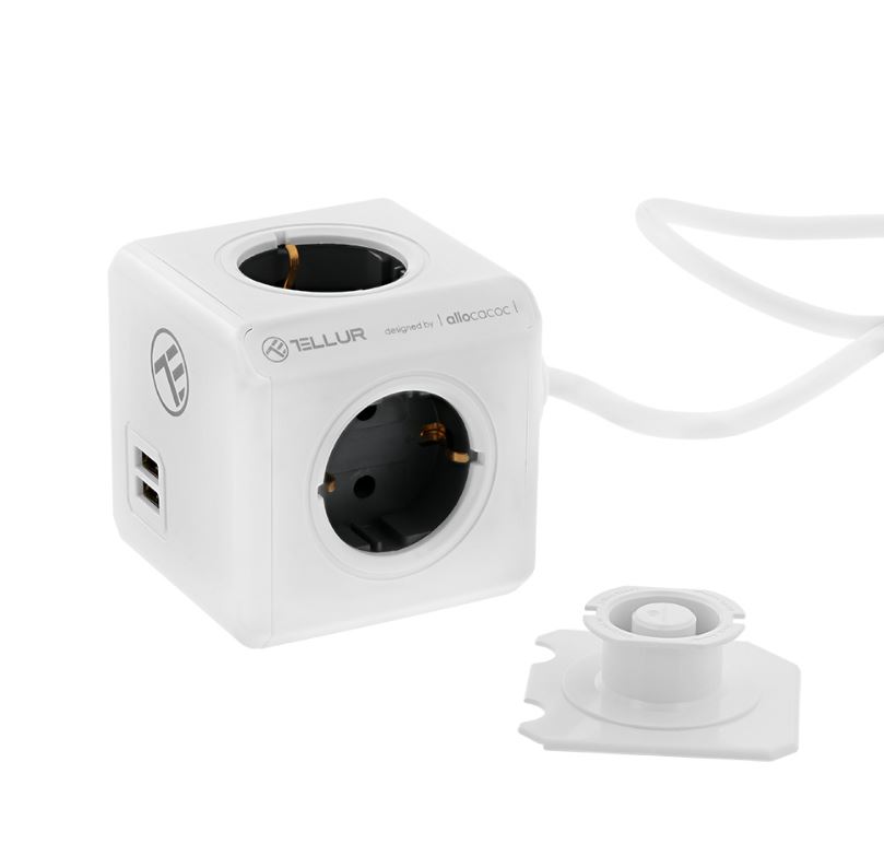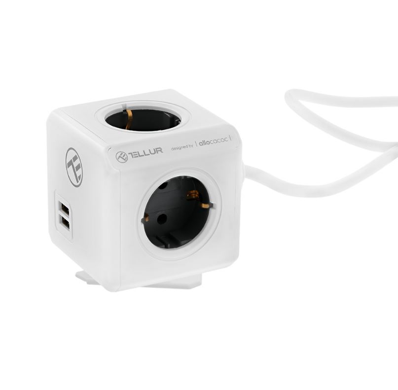 Tellur Power Cube Extended, 4 väljundiga toitega laadepiirang + 2xUSB port, 1,5m valge kaabel (TLL151111)