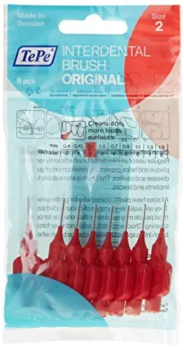 What is TePe Interdental Brushes Original Red TePe Interdental Brushes Original Red are designed specifically to clean in-between your teeth and all those hard to reach places. These special brushes are designed with a metal wire that cleans your teeth thoroughly. With daily use, these brushes can effectively reduce the build-up of plaque - thus preventing gum disease, bad breath and tooth decay. Usage How to use TePe Interdental Brushes Original Red Directions for the use of TePe Interdental Brushes Original Red: For the front of the mouth, insert the brush in the space between the teeth at the gum level by turning slightly. This technique aids access and reduces stress on the wire, thereby lengthening the life of the brush. Once inserted, gently move the brush back and forth a few times to remove plaque and debris. For the back of the mouth, access may be improved by first curving the brush head. DO NOT bend. NEVER force the brush into a space. Always rinse the brush with water after use. Use daily, we recommend you change the brush every week, or when the bristles become worn.Usage Warnings Precautions to consider before using TePe Interdental Brushes Original Red You should carefully read product packaging and labels prior to use.Warnings.