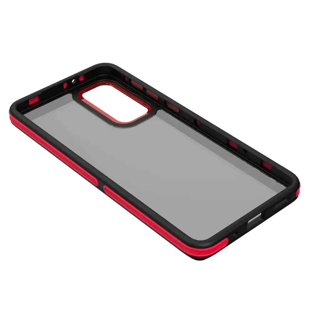 The back of the case, made from transparent, slightly smoked PC, adds elegance and effectively protects against scratches. Metallic buttons and a specially designed camera island give the whole a stylish appearance and enhance user comfort.