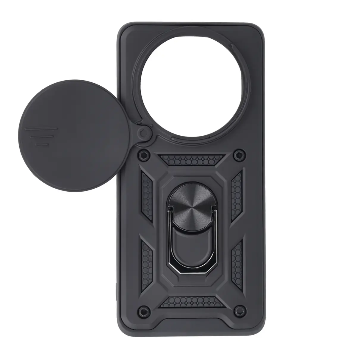 Defender Slide is a reinforced case for smartphones that provides good protection for the device. The product consists of several layers that stiffen and strengthen its construction. The case is made from PC, TPU, and features a built-in aluminum finger holder.