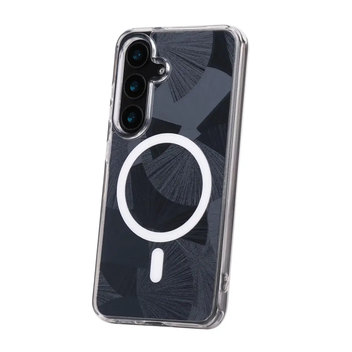 The Flash Mag case is a durable polycarbonate and TPU cover that provides effective protection against drops and scratches. It features integrated shock-absorbing corners, a raised camera bezel, and a thickness of 1.5 mm to maintain a slim profile. The built-in 2000 Gs magnet enables full compatibility with MagSafe and fast wireless charging. The geometric, iridescent pattern gives the case a modern look, while precise cutouts and a lanyard hole enhance usability.
