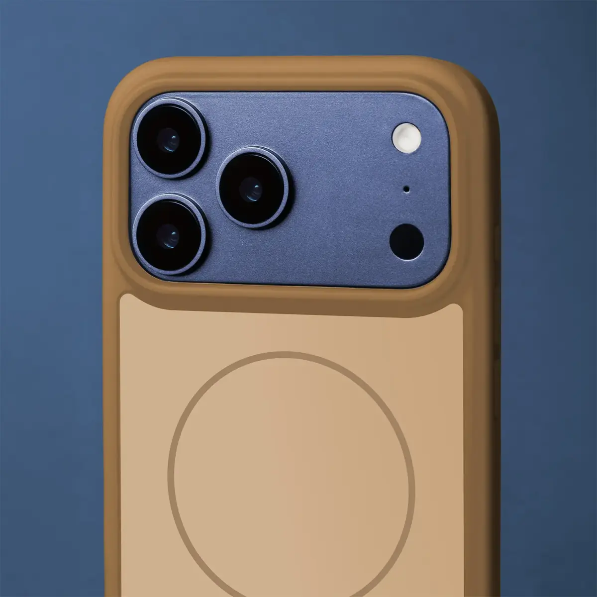 Frame Thin Mag is a thin cover with a hard PC back and a flexible TPU frame, equipped with a 1800 GS magnet compatible with MagSafe. It protects the phone with raised edges for the screen and camera, while the matte finish provides a secure grip without smudges. The modern design with subtle color contrast does not noticeably increase the thickness of the device, and discreet cutouts in the corners allow for attaching a strap or charm.
