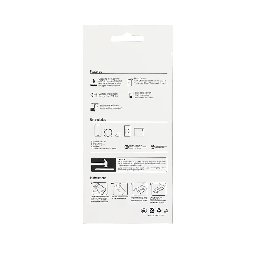 High hardness 9H tempered glass perfectly protects the phone screen. It ensures image clarity, and the oleophobic coating provides resistance to fingerprints and dirt. The glass is thin and durable, with a thickness of only 0.3 mm. After application, the phone retains its touch properties. The adhesive covers the entire surface, preventing dust and dirt from accumulating under the glass. The edges of the glass are rounded, ensuring safe use. The product is intended solely for phones with a flat screen. The set includes a complete set of 10 pieces of glass and cleaning cloths.