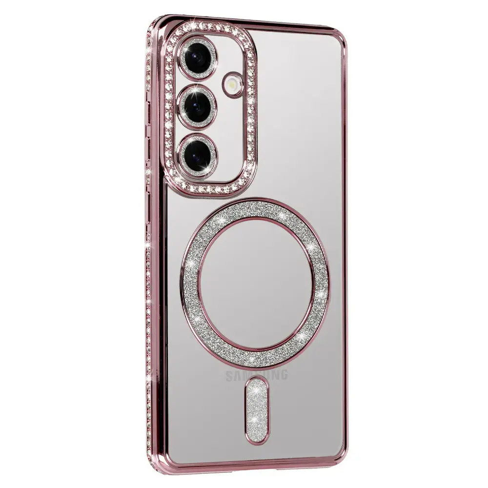 Bling MagSafe Case - a stylish case combining functionality and elegance. Made from flexible TPU, it provides full protection for your smartphone. Built-in magnets make it compatible with Apple MagSafe accessories. Made from flexible TPU Full protection against scratches and drops Magnetic ring compatible with MagSafe accessories Borders and camera island adorned with sparkling rhinestones MagSafe element and camera island covered with shimmering glitter Built-in protective glass for camera lenses Raised edges for extra screen protection Lanyard attachment for added convenience Precise cutouts ensure easy access to all ports Integrated buttons to keep out dust and debris Anti-slip material for a secure grip