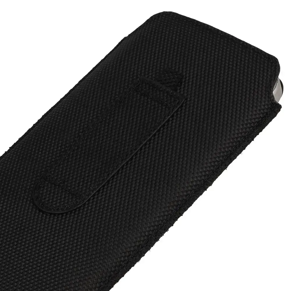 The phone is inserted from the top of the case and the Velcro fastening prevents it from falling out. The PULL-UP strap inside the case allows you to quickly and easily pull your phone out. The embossed logo on the clasp adds an elegant touch.
