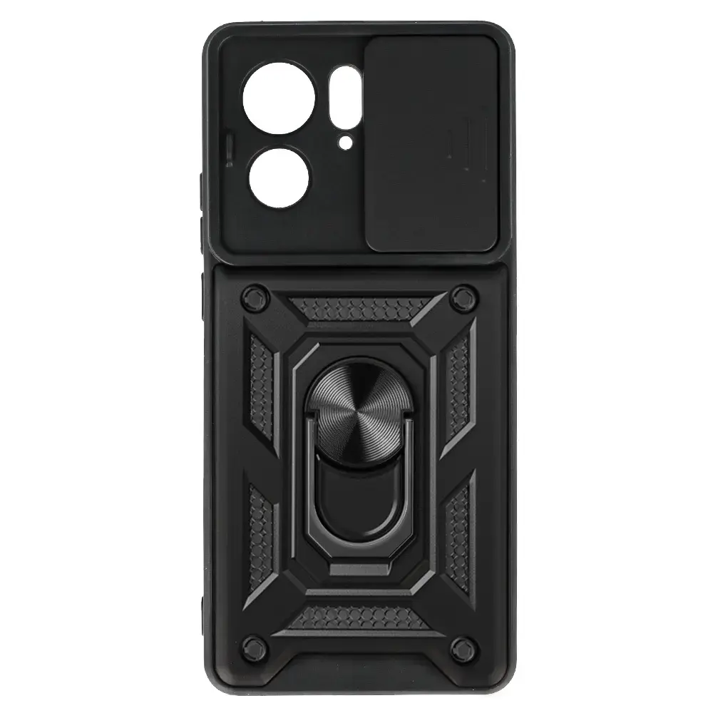Slide Camera Armor Case - is a case that is ideal for extreme conditions. The case protects the back, sides and screen of your smartphone. With this case, you don't have to worry about your phone! Protection against scratches and drops Hybrid construction - flexible TPU and hard PC Built-in Ring grip for a more secure hold on your phone. Also functions as a stand e.g. when watching films or video calls Metal plate for use with magnetic car mounts Reinforced corners to absorb the force of impact Protruding edges provide extra protection for the screen and camera Necessary cut-outs for sockets, function buttons and camera Integrated buttons prevent dust and dirt from getting under the case Non-slip silicone ensures that the phone fits securely in your hand Charging of the phone without having to take it out of the case ATTENTION - the ring may interfere with inductive charging, it is recommended to remove the phone from the case when you want to charge the device using QI charging.