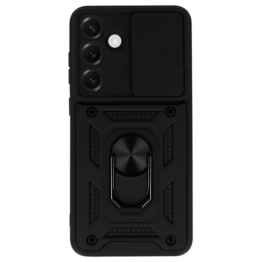 Slide Camera Armor Case - is a case that is ideal for extreme conditions. The case protects the back, sides and screen of your smartphone. With this case, you don't have to worry about your phone! Protection against scratches and drops Hybrid construction - flexible TPU and hard PC Built-in Ring grip for a more secure hold on your phone. Also functions as a stand e.g. when watching films or video calls Metal plate for use with magnetic car mounts Reinforced corners to absorb the force of impact Protruding edges provide extra protection for the screen and camera Necessary cut-outs for sockets, function buttons and camera Integrated buttons prevent dust and dirt from getting under the case Non-slip silicone ensures that the phone fits securely in your hand Charging of the phone without having to take it out of the case
