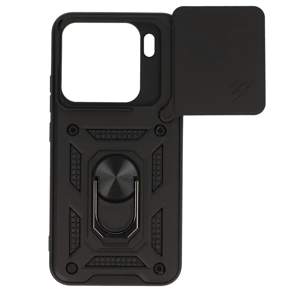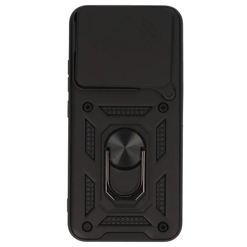Slide Camera Armor Case - is a case that is ideal for extreme conditions. The case protects the back, sides and screen of your smartphone. With this case, you don't have to worry about your phone! Protection against scratches and drops Hybrid construction - flexible TPU and hard PC Built-in Ring grip for a more secure hold on your phone. Also functions as a stand e.g. when watching films or video calls Metal plate for use with magnetic car mounts Reinforced corners to absorb the force of impact Protruding edges provide extra protection for the screen and camera Necessary cut-outs for sockets, function buttons and camera Integrated buttons prevent dust and dirt from getting under the case Non-slip silicone ensures that the phone fits securely in your hand Charging of the phone without having to take it out of the case