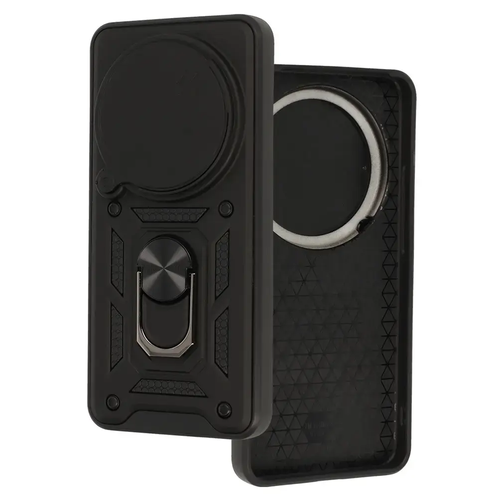 Slide Camera Armor Case - is a case that is ideal for extreme conditions. The case protects the back, sides and screen of your smartphone. With this case, you don't have to worry about your phone! Protection against scratches and drops Hybrid construction - flexible TPU and hard PC Built-in Ring grip for a more secure hold on your phone. Also functions as a stand e.g. when watching films or video calls Metal plate for use with magnetic car mounts Reinforced corners to absorb the force of impact Protruding edges provide extra protection for the screen and camera Necessary cut-outs for sockets, function buttons and camera Integrated buttons prevent dust and dirt from getting under the case Non-slip silicone ensures that the phone fits securely in your hand Charging of the phone without having to take it out of the case