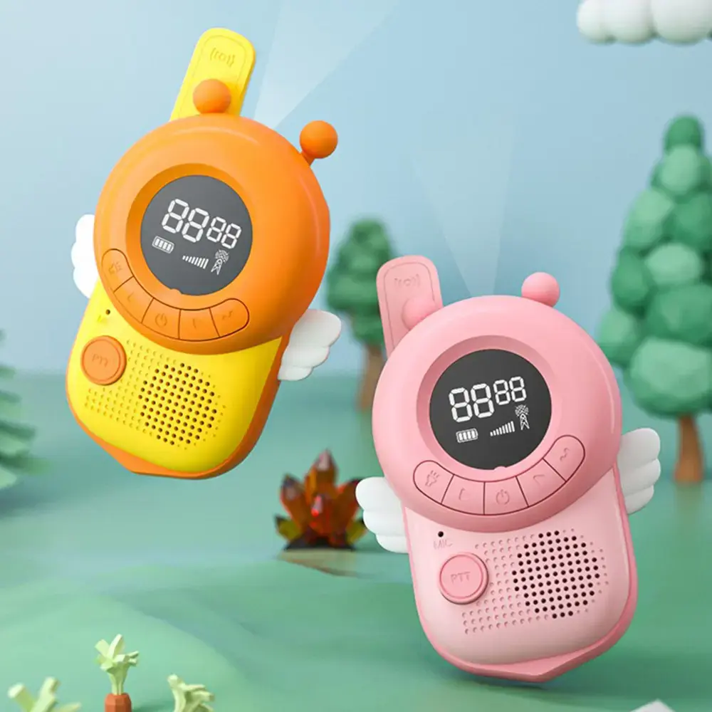 Sleek, brightly colored kids’ walkie talkies in a super cute bunny design, attractive for girls and boys. Durable and non-toxic ABS plastic material, and 0.5W transmission power delivering very low radiation, 100% safe for children to use. Great for both indoor and outdoor use. Each receiver runs on 4 AAA batteries (included).