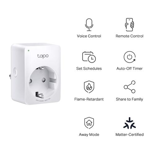 Tapo pakub kasutajatele mitmeid võimalusi konfiguratsioonikogemuse lihtsustamiseks. Kasuta Bluetoothi, et nutipistikuga Tapo rakenduse kaudu hõlpsasti ühenduse luua. Kasutajad saavad Tapo P100M seadistada skaneerides kaasasolevat koodi mis tahes Matter-ühilduva rakendusega, näiteks Alexa rakenduse, Google Home rakenduse või Apple Home rakendusega. TP-Link TAPO P100M. Paigalduskoht: Siseruumid, Toote värv: Valge, Parimad kasutusalad: Kodu, Büroo. Ühendustehnoloogia: Traadita, Traadita tehnoloogia: Bluetooth / Wi-Fi, Sagedusvahemik: 2,4 - 2,4 GHz. Maksimaalne sisendvõimsus: 2300 W, AC sisendpinge: 100 - 240 V, Toitepistik tüüp: F. Laius: 51 mm, Sügavus: 40 mm, Kõrgus: 72 mm