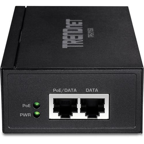 TRENDnet's 2.5G PoE+ Injector, model TPE-215GI, combines electrical power with a 2.5GBASE-T network connection to produce a 2.5G PoE+ network signal. Auto-sensing technology conveniently delivers the correct wattage needed to power your PoE and PoE+ devices. Connect the 2.5G PoE+ injector to a non-PoE switch, and then run an Ethernet cable with data + power to network a PoE or PoE+ device up to 100 meters (328 ft.) away. Network PoE devices such as wireless access points, IP cameras, VoIP phone systems, IPTV decoders, access controls, and more.