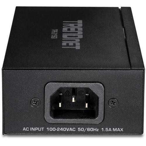 Featuring auto-sensing technology, the 2.5G PoE+ injector conveniently delivers the correct wattage needed to power your PoE and PoE+ devicesTrendnet TPE-215GI. Ethernet interface type: 2.5 Gigabit Ethernet, Ethernet LAN data rates: 2500 Mbit/s, Networking standards: IEEE 802.3, IEEE 802.3ab, IEEE 802.3af, IEEE 802.3at, IEEE 802.3bz, IEEE 802.3u. Product colour: Black, Maximum operating distance: 100 m, LED indicators: PoE, Power. Power consumption (typical): 0.7 W, Total Power over Ethernet (PoE) budget: 30 W. Width: 154 mm, Depth: 73 mm, Height: 36 mm. Number of products included: 1 pc(s)