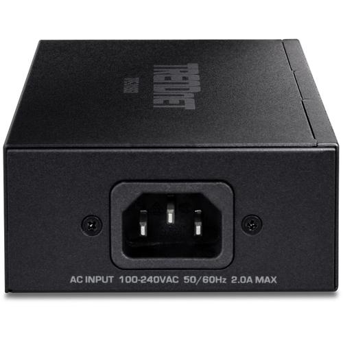 Equipped with a 10GBASE-T RJ-45 port providing network speeds of up to 10Gbps over existing Cat6a or better cabling.Trendnet TPE-319GI 10G PoE++ Injector. Ethernet interface type: 10 Gigabit Ethernet, Cabling technology: 1000/10000, Networking standards: IEEE 802.3, IEEE 802.3ab, IEEE 802.3af, IEEE 802.3an, IEEE 802.3bt, IEEE 802.3bz, IEEE 802.3u. Product colour: Black. Power consumption (max): 0.7 W, Total Power over Ethernet (PoE) budget: 90 W. Width: 193 mm, Depth: 82 mm, Height: 38 mm. Number of products included: 1 pc(s)