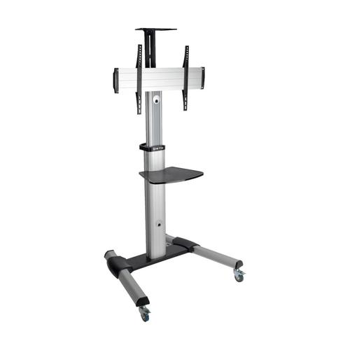 A shelf mounted above the display holds projectors, webcams and laptops. A lower shelf supports up to 11 lbs (4.9 kgs) and holds other audio/video components, such as a Blu-ray player. Durable aluminum and steel construction supports up to 150 lbs (68 kgs). The adapter brackets can be adjusted to conform to VESA-compliant displays with any of the following mounting hole patterns: 200 x 200, 200 x 300, 200 x 400, 300 x 200, 300 x 300, 300 x 400, 400 x 200, 400 x 300, 400 x 400, 500 x 200, 500 x 300, 500 x 400, 600 x 300 and 600 x 400Tripp Lite DMCS3270XP Rolling TV/Monitor Cart - for Flat/Curved 32” to 70” TVs and Monitors. Maximum weight capacity: 68 kg, Minimum screen size: 81.3 cm (32"), Maximum screen size: 177.8 cm (70"), Minimum VESA mount: 200 x 200 mm, Maximum VESA mount: 600 x 400 mm. Height adjustment range: 1193.8 - 2070.1 mm. Product colour: Black, Silver