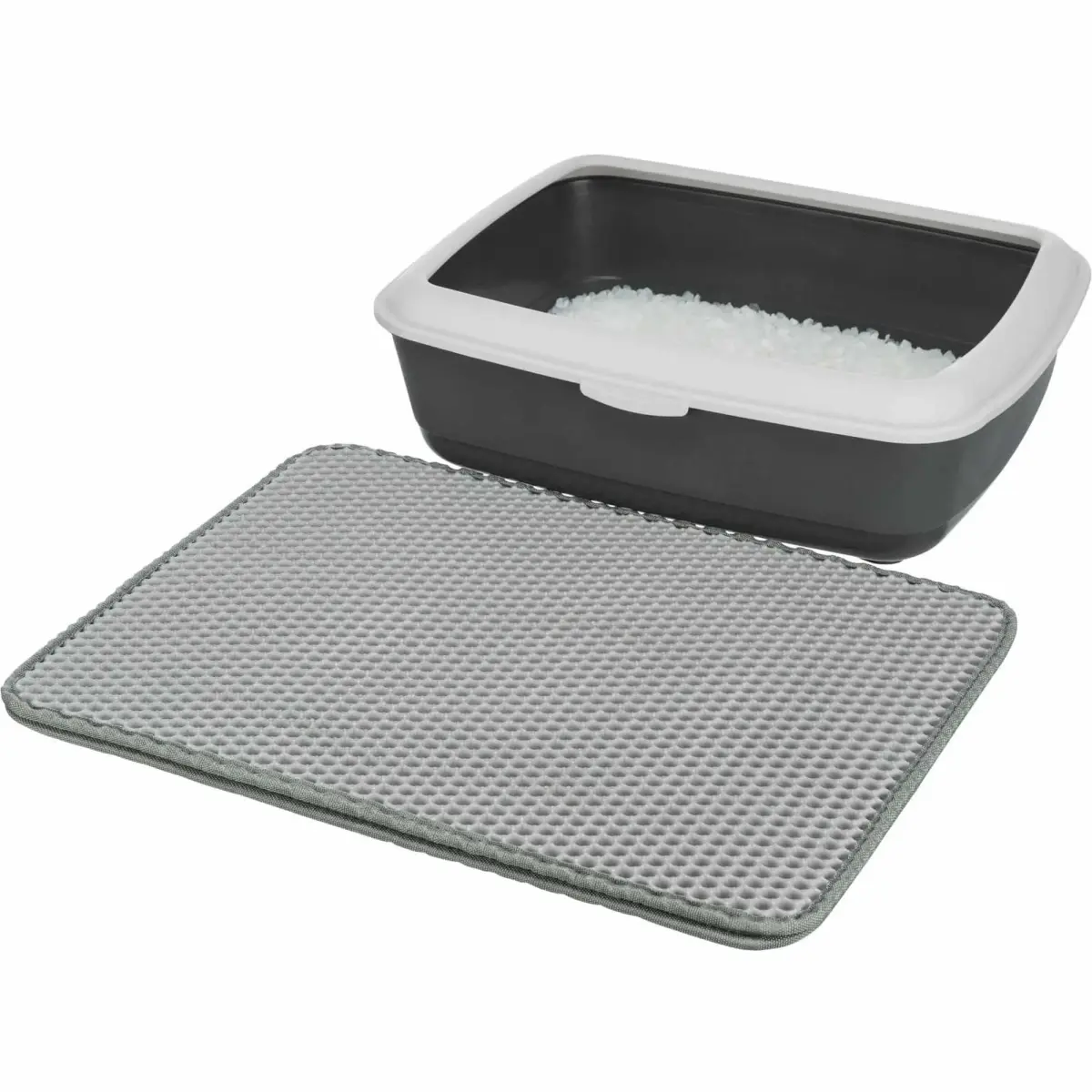 Cat litter tray mat : Trixie Cat litter tray female-mat, EVA, grey Two-layer cat litter tray mat.Made of ethylene vinyl acetate (EVA), which keeps its shape well;Suitable for all cat litter trays;The top layer keeps litter, sand and dirt well away from paws;The mat can be easily cleaned.Colour: Grey