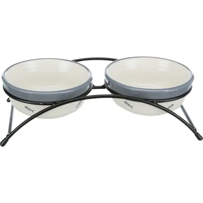 Paliktnis ar bļodām : Trixie Eat on Feet Bowl Set, 2*0.3 l/12 cmKeramiskās bļodas un metāla paliktnis ar neslīdošām gumijas kājām. Neslīdošs statīvs palīdzēs jums uzturēt kārtību mājās un jūsu mājdzīvniekam būs īpaši ērti ēst, jo bļodas statīvs neslīd. Bļodas ideāli der gan ūdenim, gan barībai, var mazgāt trauku mazgājamā mašīnā.