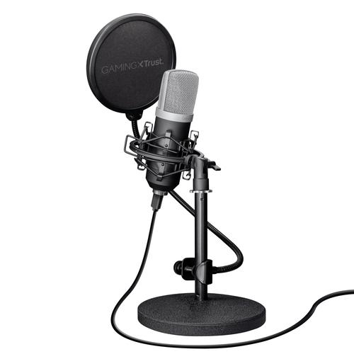 - Detachable 1.8m USB cableTrust 21753. Type: Studio microphone, Microphone frequency: 20 - 20000 Hz, Microphone direction type: Cardioid. Connectivity technology: Wired, Device interface: USB. Product colour: Black, Cable length: 1.8 m, Country of origin: China. Power source: USB. Diameter: 4.7 cm, Microphone weight: 300 g