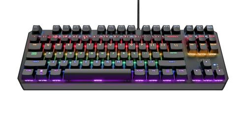 Rainbow-wave lighting featuring 6 colours with 20 modes – and adjustable brightness and speed – will add a dash (or 10) of flavour to your gaming setup.Trust GXT 834 Callaz. Keyboard form factor: Full-size (100%). Keyboard style: Straight. Connectivity technology: Wired, Device interface: USB, Keyboard key switch: Mechanical, Keyboard layout: QWERTY, Keyboard number of keys: 87. Backlight type: LED. Cable length: 1.8 m. Recommended usage: Gaming. Product colour: Black
