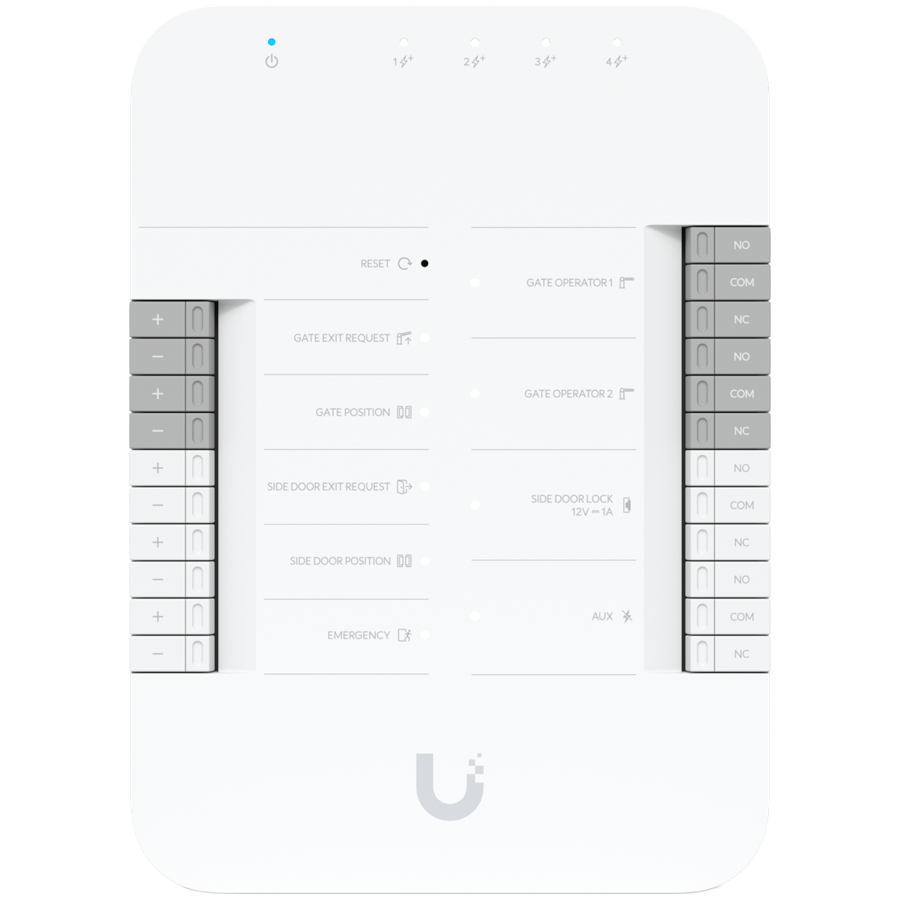 Ubiquiti UA-Hub-Gate-avatud Gate Hub, mis lubab lihtsatada avatud kontrolli kaudu ühendatud Access lugejate või Intercomi, 2x Gate operatooriterminaale, sideuuringu terminal (12V) sõlmele, AUX terminal sõltumatu sirenile (UA-HUB-GATE)