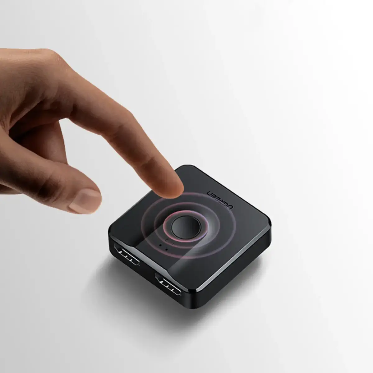 Ugreen switch HDMI splitter switch - 2x HDMI 4K x 2K 60Hz black (CM217) HDMI splitter (switch) is a small device that allows you to connect two image sources to one HDMI input, e.g. a TV tuner, decoder, DVD player or game console. Thanks to it, you will forget about the problem of the lack of HDMI plugs in your TV, projector or monitor. The switch is compatible with any device equipped with an HDMI connector. It works on the Plug&Play principle, does not require any drivers. It guarantees excellent image quality. The switch is equipped with two input ports and one output. The top button is used to easily switch between sockets. The signal source is marked with a luminous number located on the front of the device. After starting or connecting the image source, just press the button for the splitter to switch to this device. Specification: Brand: Ugreen Model: CM217 Color: Black Chipset: TS3DV642+ENF202 Material: PC + ABS Connector type: HDMI HDMI Standard: 2.0 Type of connectors: 2x HDMI IN, 1x HDMI OUT Supported resolution: 4K 60Hz, 1080p 120Hz Device type: Plug&Play - no drivers required Dimensions: 51mm x 51.6mm x 13.5mm
