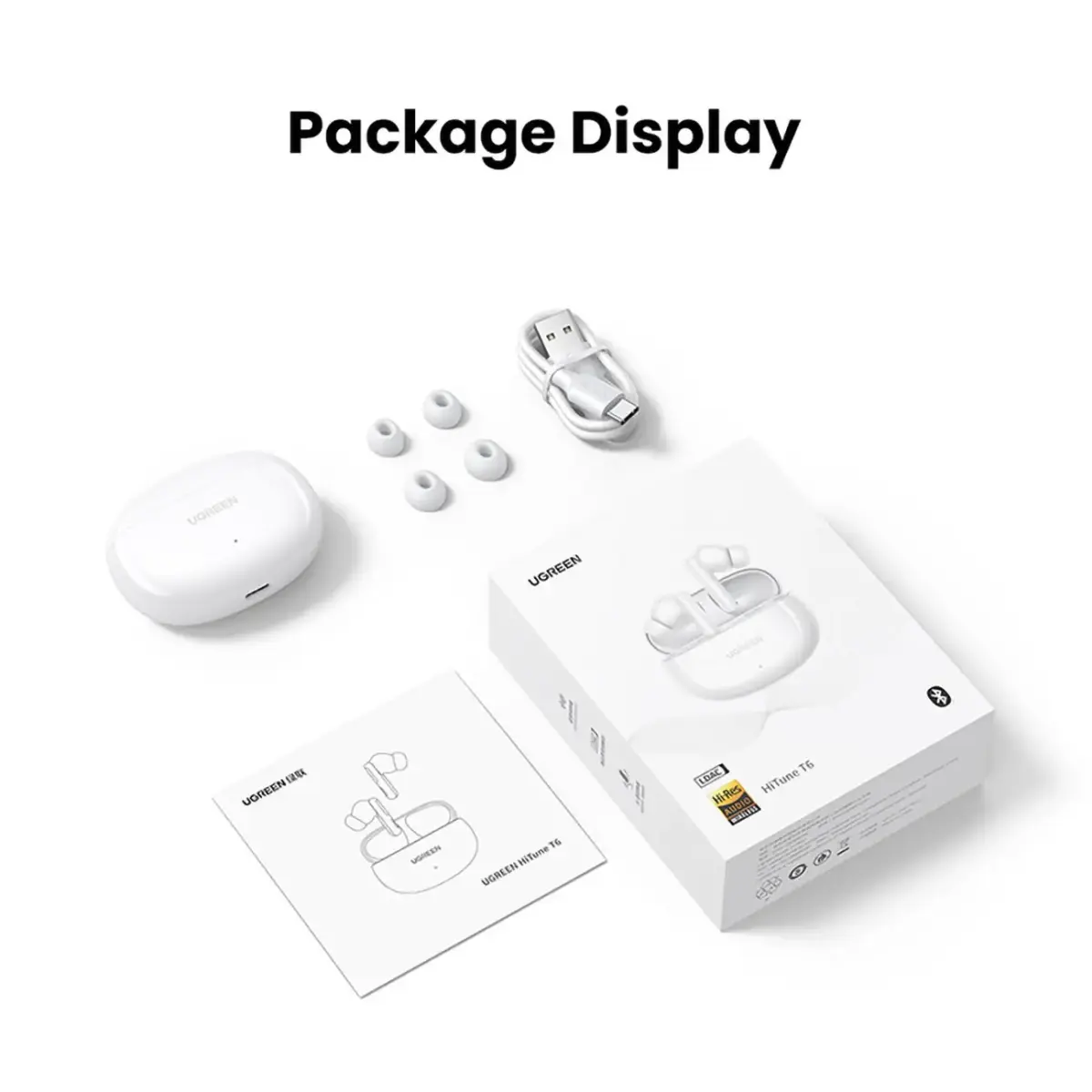 UGREEN HiTune T6 juhtmevabad kõrvaklapid ANC-ga + USB-A - USB-C kaabel - valge (15158-ugreen)