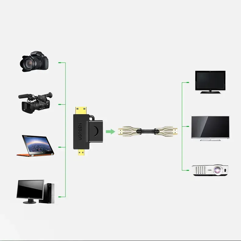 Brand UGREEN Name Micro HDMI + Mini HDMI Male to HDMI Female Model 20144 Compatibility HDMI, Mini HDMI, Micro HDMI