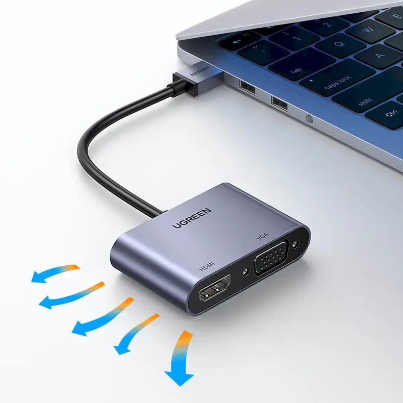 How about a review of the presentation made in Power Point on a slightly larger screen to better present its assumptions? Or maybe you want to view your vacation photos on your TV? This is why the Ugreen USB-C - HDMI + VGA video adapter was created. This small accessory makes it easy to connect a modern laptop to a TV or projector using a VGA or HDMI cable .