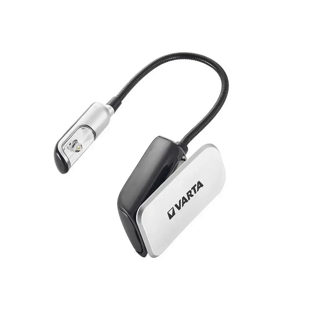 The VARTA Book Light is a practical and reliable solution for book lovers. With its flexible 150 mm arm and clip, the lamp allows precise adjustment of the light direction, ensuring comfortable reading conditions. Its compact and lightweight design makes it perfect for use at home, while traveling, or in dimly lit areas. The product is powered by two CR2032 batteries, which are included in the set. Technical Specifications: