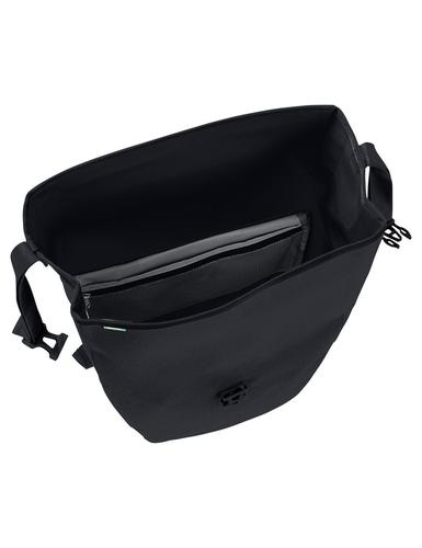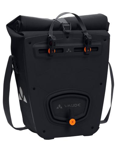 Heading out into the big wide world or maneuvering the urban jungle? Our classic for bikepacking also comes in a textile material version that's perfect for urban living. The waterproof rear pannier with an understated print is manufactured at the German VAUDE company headquarters near Lake Constance with durable, PVC-free tarpaulin material. With a roll closure that allows you to customize the size of the bag and seal it so that it's water tight. An extra inside pocket makes it easy to store things separately. The bag is securely attached to either the right or left side of the rear gear rack with the QMR 2.0 system, which also allows for easy adjustment and quick on-and-off. With a bike lock, it can be directly locked onto the QMR hook. With reflective elements. Included: two bags (pair). Can be used together with the practical accessory bags: Sortyour Business, Sortyour Back, Addita Bag.