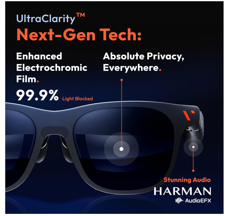 The VITURE Pro XR is a stylish and lightweight augmented reality headset designed to create a personal virtual screen up to 135 inches in size. It features a Sony Micro-OLED display with a resolution of 1920×1080 pixels per eye and a 120Hz refresh rate, delivering sharp and smooth visuals. The electrochromic film allows for adjustable lens tint, ensuring comfortable use in various lighting conditions. Specifications: Display: Sony Micro-OLED, 1920×1080 pixels per eye, 120Hz Brightness: 4000 nits (peak), 1000 nits (perceived) Refresh Rate: 120Hz Field of View: 46° Contrast Ratio: 100,000:1 Color Gamut: 108% sRGB Myopia Adjustment: 0.0D to -5.0D Weight: 77g Materials: Aluminum, Titanium Connectivity: USB Type-C 3D Support: Yes Audio: Stereo speakers, Harman-tuned sound