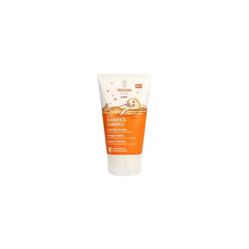 Weleda Laps 2in1 šampoon & dušigeel - Rõõmsa apelsini 150ml läbipaistvas pakendis (4001638075114)