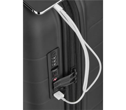 Robust yet perfectly portable, the Syntry Carry-On is a powerhouse rolling case with precision maneuverability. The compression molded front compartment safely stores your 14'' laptop and 10'' tablet, while the quick pocket offers speedy access to important items. Spacious and secure thanks to the combination lock and security zipper, there's also a USB charger and integral ID tray. Four super quiet dual-caster wheels make for easy wheeling, so you can sail across the terminal or cruise along the platform.