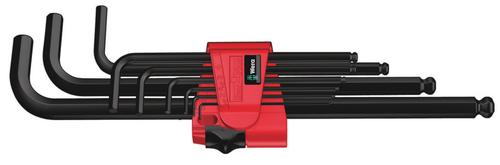 High quality L-key set for hexagonal socket screws in a practical clip fastener out of wear-resistant material, enabling secure storage of the L-keys as well as simple removal. L-keys with Hex-Plus profile: offers a larger contact surface within the screw head. This reduces the notching effects to a minimum and almost completely eliminates the risk of destroying the screw recess. The ball-end on the long arm allows for reliable working even in difficult installation situations. The BlackLaser surface treatment provides outstanding surface protection, even against corrosion, and a long service life. The tools are quickly to hand thanks to the laser-engraved and thereby wear-resistant size markings on the L-keys.Wera 05073596001. Product type: L-shaped hex key set, Type of hex key size: Metric, Number of keys included: 9 pc(s)