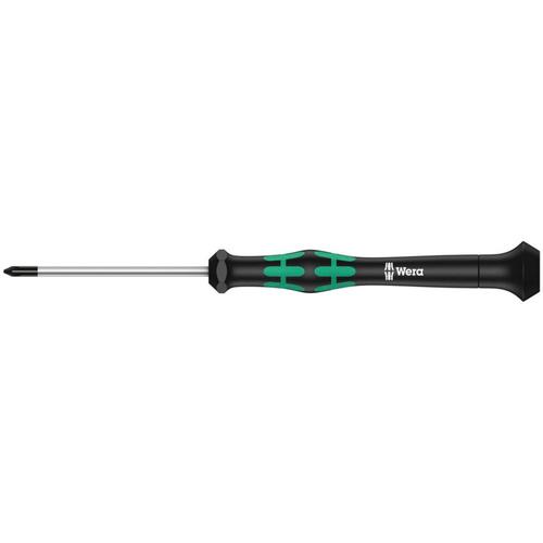 High quality Wera Micro screwdriver for precision mechanical jobs. Rapid twisting results from fixing the hand on the head and using the fast-turning zone just below. This makes time-consuming grip adjustments unnecessary. Power zones with integrated soft sections ensure the transfer of high loosening and tightening torque; a precision zone for the right rotation angle during fine adjustment work. The Black Point tip offers optimised corrosion protection and an exact fit.Wera 05118022001. Length: 157 mm