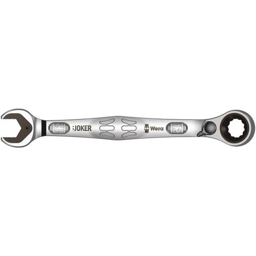 Ratcheting combination wrench, switch lever for convenient change of direction; ring end angled at 15° from the handle.Wera Joker Switch 12. Wrenches/sockets sizes: 12 mm, Wrenches/sockets sizes (imperial): 1/4", Product colour: Stainless steel. Width: 171 mm. Number of pieces: 1 pc(s)