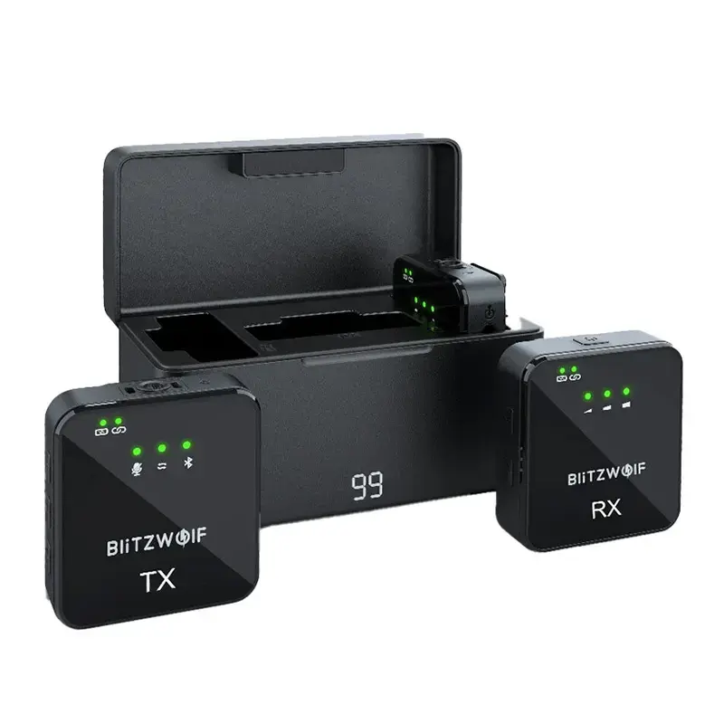 Record high-quality sound no matter what the situation. The BlitzWolf BW-SX63 wireless microphone delivers crystal clear sound and stands out for its high sensitivity, and features a long battery life thanks to its high-capacity battery. It also supports intelligent DSP noise reduction, so you don't have to worry about interference. The device is perfect for many applications - you will find it useful for recording vlogs, live broadcasting and more.