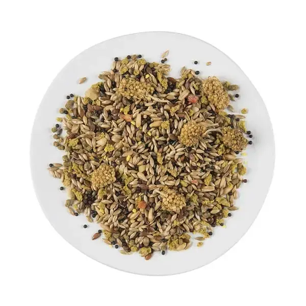 Complete premium food for adult canaries - Witte Molen Puur CANARY 2kg Complete premium food for canaries. Pure and varied seed mix with special ingredients for a healthy and happy bird life. No artificial fragrances, colours or flavours. Rich in protein and flaxseed to give shine to the feathers and make sweeping easier. Added prebiotics promote healthy digestion. Contains: seeds (2% millet, 2% linseed 2% chia seeds), grains, vegetable derivatives, minerals, fruit (1% banana), oils and fats, vegetables, eggs and egg products 0.2%. Analytical components: crude protein 15.8%, crude oils and fats 15.3%, crude fibre 7.3%, crude ash 4.4%, calcium 0.62%, phosphorus 0.44%, sodium 0.09%. Additives: Nutritional supplements/kg: Vit A 1.000 IU, Vit D3 100 IU, Vit E 5 mg, Vit C (Lascorbic acid) 3 mg, Iron (ferrous (II) sulphate) 0,8 mg, copper sulphate pentahydrate 0,1 mg, selenium (sodium selenite) 0,003 mg. Additives: antioxidants. Store at room temperature in a dry and dark place. Feeding recommendations: 10-15 g/day. Provide your pet with fresh food and water every day! Expiry date, batch no.: see on the package.