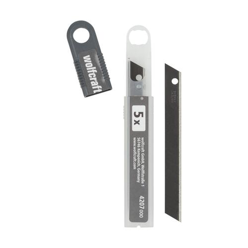 According to their VPA certificate, the black Pro-Sharp snap-off blades are up to 30 per cent sharper than conventional snap-off blades. The blade is 9 mm wide, consists of 13 snap-off segments and is compatible with all 9 mm snap-off blade knives. The set contains 5 blades.wolfcraft GmbH 4207000. Quantity per pack: 5 pc(s), Width: 9 mm, Thickness: 0.4 mm