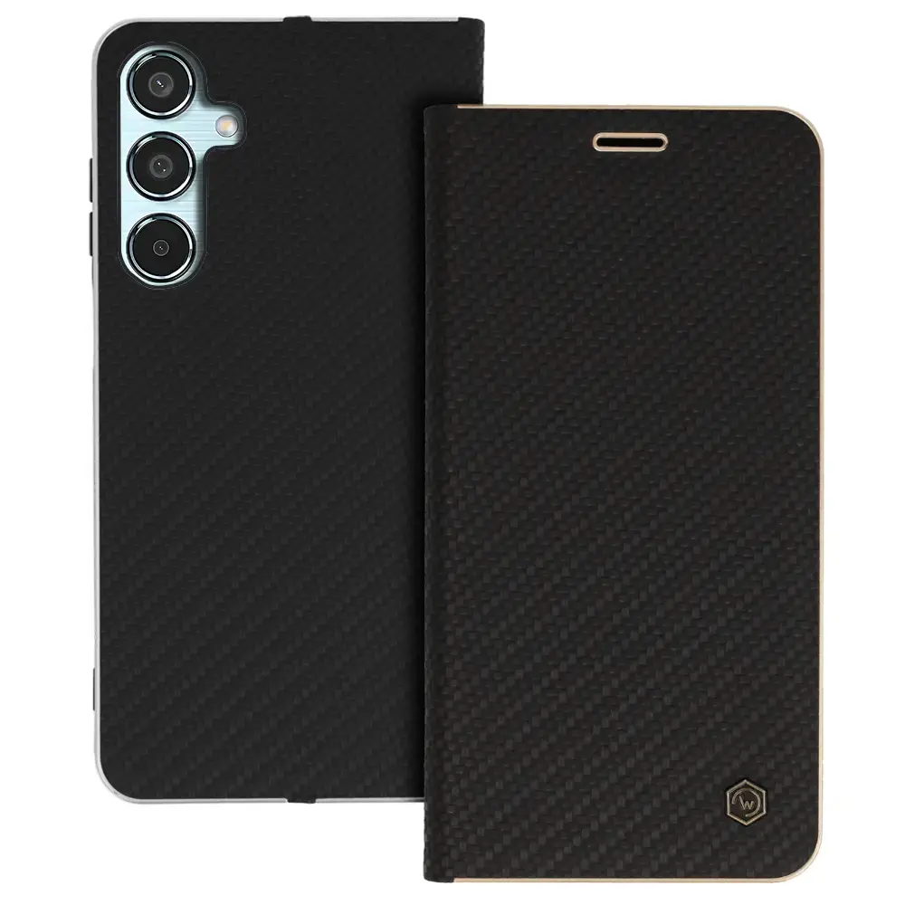 Elegance and Functionality in a Modern Form Made of high-quality eco-leather with a carbon texture – stylish, durable, and wear-resistant. Interior lined with soft suede – protects the screen from scratches. The case can be easily folded into a stand – perfect for watching movies and video calls. Thanks to precise cutouts, you can talk with the case closed. Golden Frame That Draws Attention Exclusive golden frame around the case – highlights its premium character and adds elegance. Perfectly matched frame color creates a stylish contrast with the carbon texture. Smart Details and Everyday Comfort Hidden magnets ensure secure closure without extra fasteners. Built-in card or document slot – always within reach.