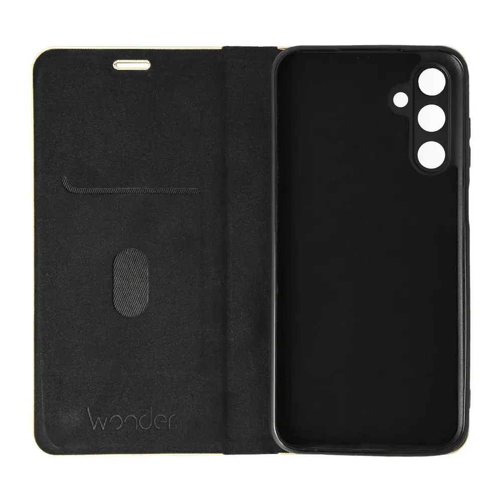Elegance and Functionality in a Classic Style Made of high-quality smooth eco-leather – elegant, durable, and pleasant to the touch. Interior lined with soft suede – protects the screen from scratches. The case can be easily folded into a stand – perfect for watching movies and video calls. Thanks to precise cutouts, you can talk with the case closed. Golden Frame That Draws Attention Exclusive golden frame around the case – highlights its unique character and adds elegance. Perfectly matched frame color creates a refined contrast with the smooth leather surface. Thoughtful Details and Everyday Comfort Hidden magnets ensure secure closure without unnecessary fasteners. Built-in slot for a card or document – always within reach.