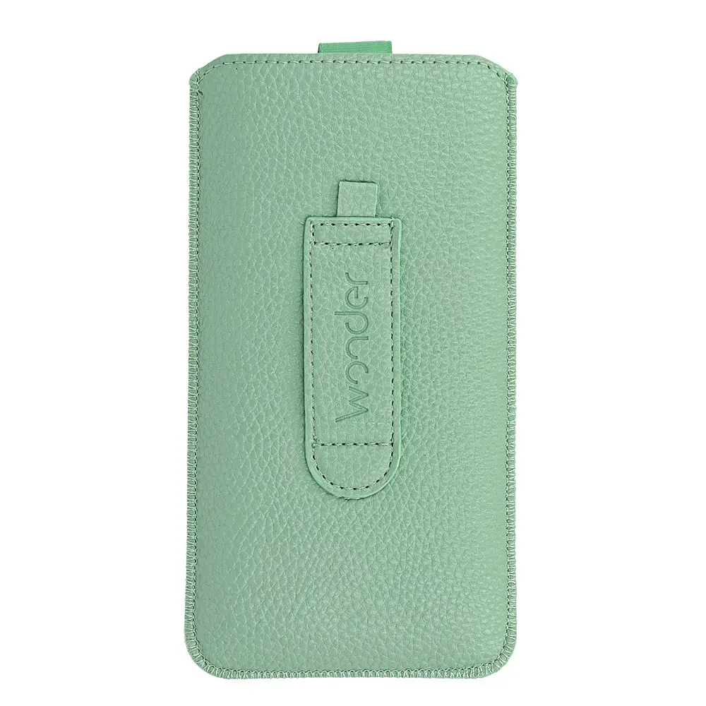 The phone is slipped in from the top of the case and the Velcro fastening prevents it from falling out. The PULL-UP strap inside the case allows you to quickly and easily pull your phone out. The embossed logo on the clasp adds an elegant touch.