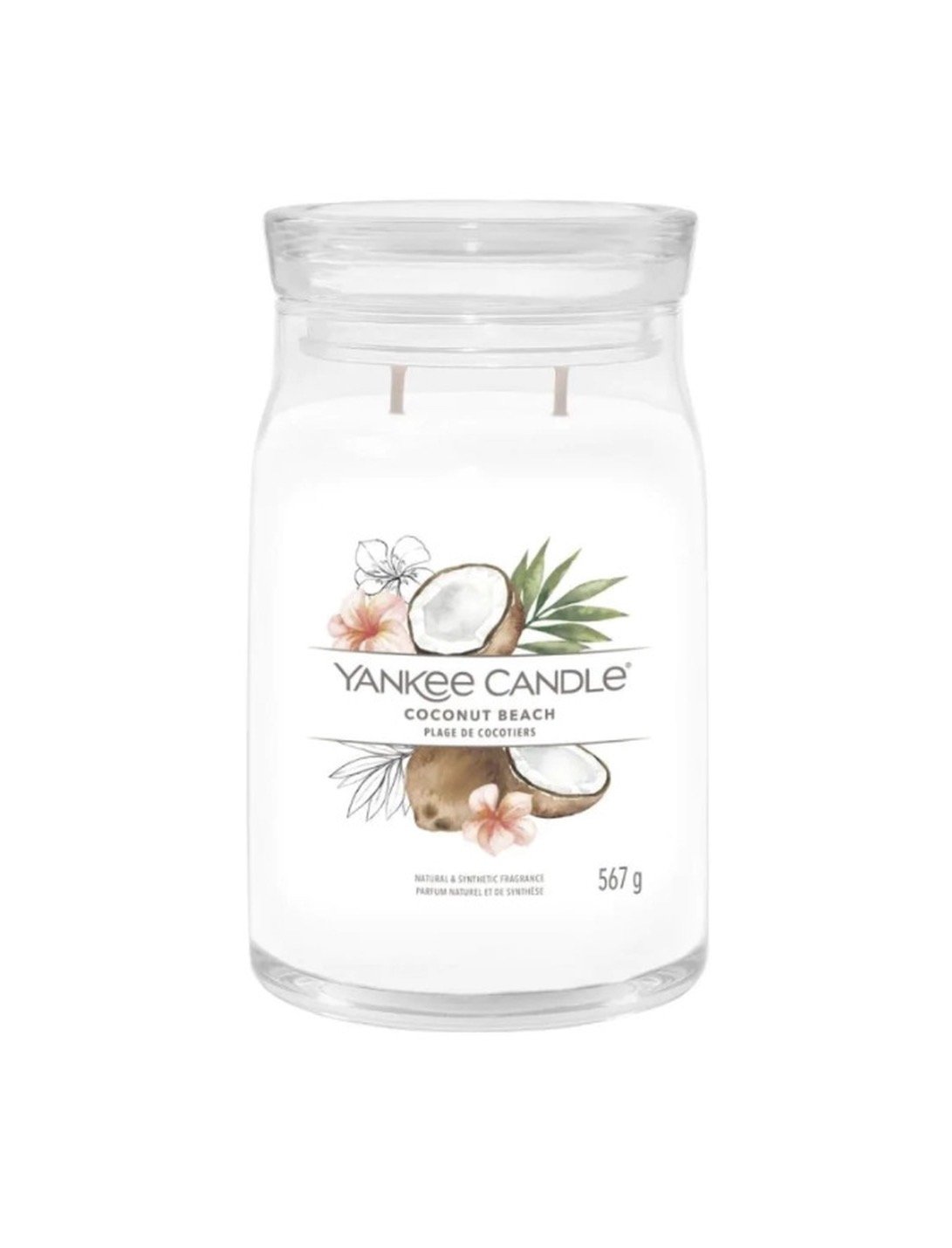 Yankee Candle Signature Coconut Beach is a large scented candle in a glass jar from the iconic Yankee Candle brand, with a warm creamy coconut fragrance and light tropical accents, 567 g volume, 60–90 h burn time, perfect for creating a cozy summer‑vibe atmosphere at home.