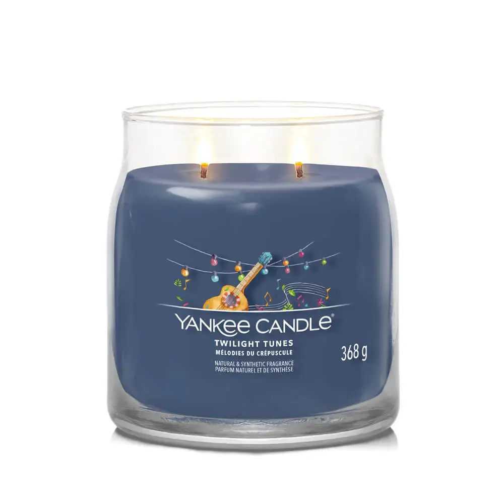 About This Fragrance The sounds of live music drift across the festival at twilight, bringing scents of cardamom, aquamarine, and woody notes. Fragrance Notes: Aquamarine Notes, Cool Cardamom, BergamotTigerlily, Apple Blossom, MuguetCedarwood, Moss, MuskAbout Signature Medium Jar Candles Experience the Yankee Candle brand, totally reimagined. This refreshing take on the iconic Jar shape is designed to create the best experience to date. The two wick Medium Jar Candle is 368g and made with a premium soy wax blend. It perfectly enhances any moment at home on its own or as part of a beautiful candles cape. Hand-illustrated labels and vibrant wax colours are perfectly matched with the tried-and-true fragrances to create an inspired addition to your home. Burn time up to 50 hours. Height 11.4cm x Width 9.4cm.