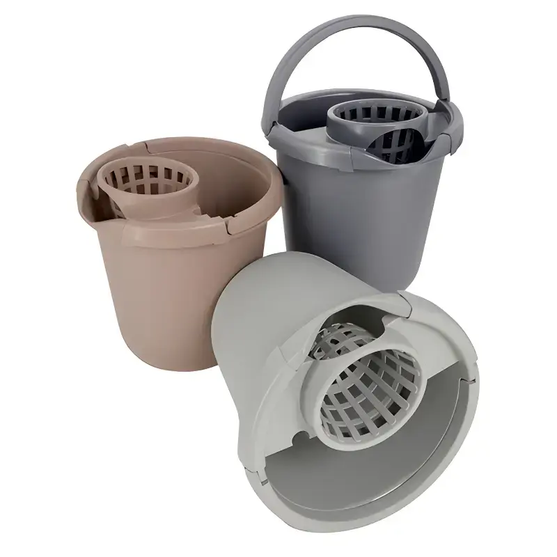 Round bucket with a capacity of 12 liters and a squeezer. A universal bucket for cleaning floors using a classic string or strip mop. It will help keep floors clean, shiny and streak-free without much effort.