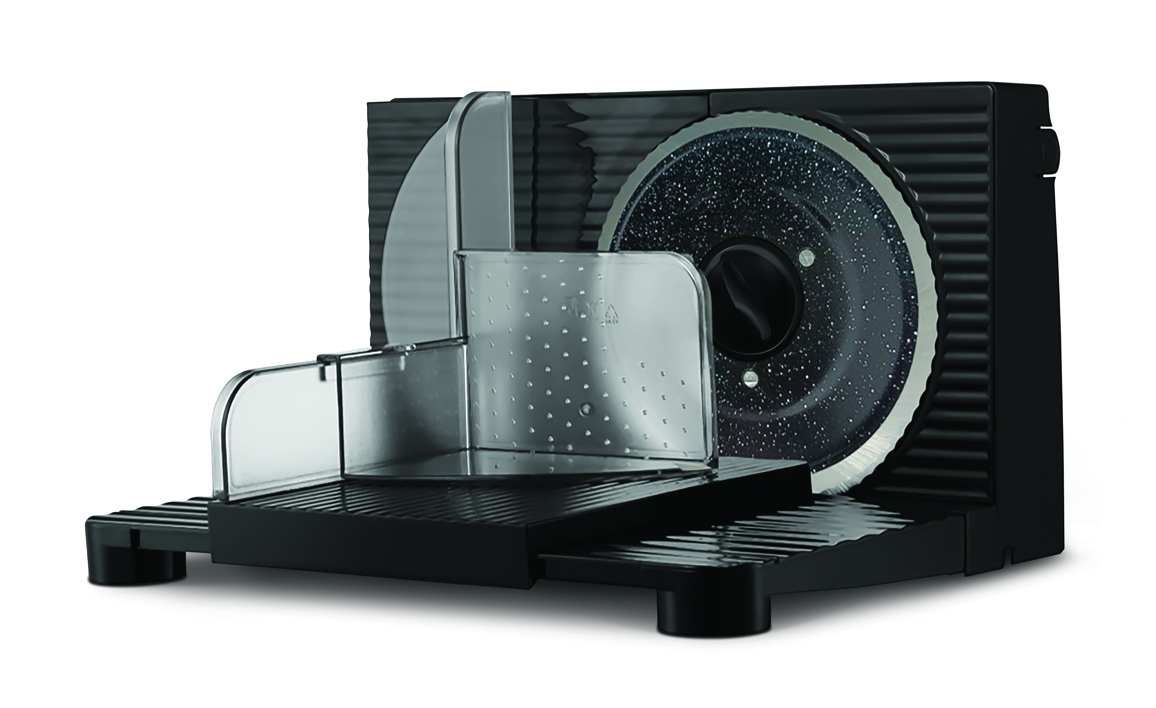 Power: 150W Slicing range: 0 - 15 mm Blade size: 170 mm Type of slicing adjustment: Smooth Safety systems: Protection against accidental start-up Removable food tray: Yes Blade material: Stainless steel coated with stone coating Blade lock: Yes Removable blade: Yes Cord storage: Yes Housing material: High quality plastic Non-slip rubber feet: Yes